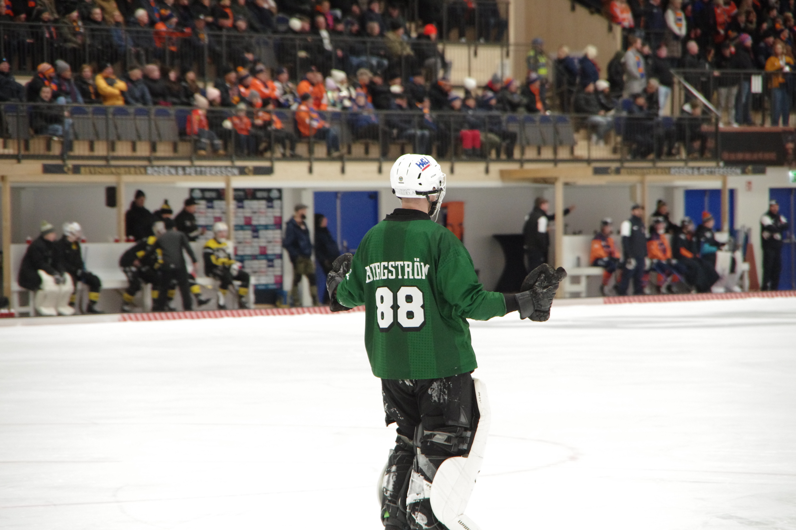 Per Hellmyrs avgör sen då han kör en smygare in från höger, vickar lite på klubba och kropp, och avslutar sen resolut med att skicka in 5-2 i taket bakom Bergström i den 68:e minuten!