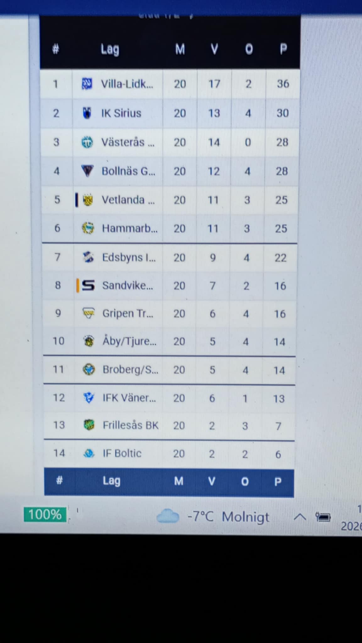 Skiljer nu bara två poäng mellan lagen... får vi se då om det ökar eller minskar efter fredagens matcher, då Sirius har Vänersborg hemma och Bollnäs tar emot VSK hemma?