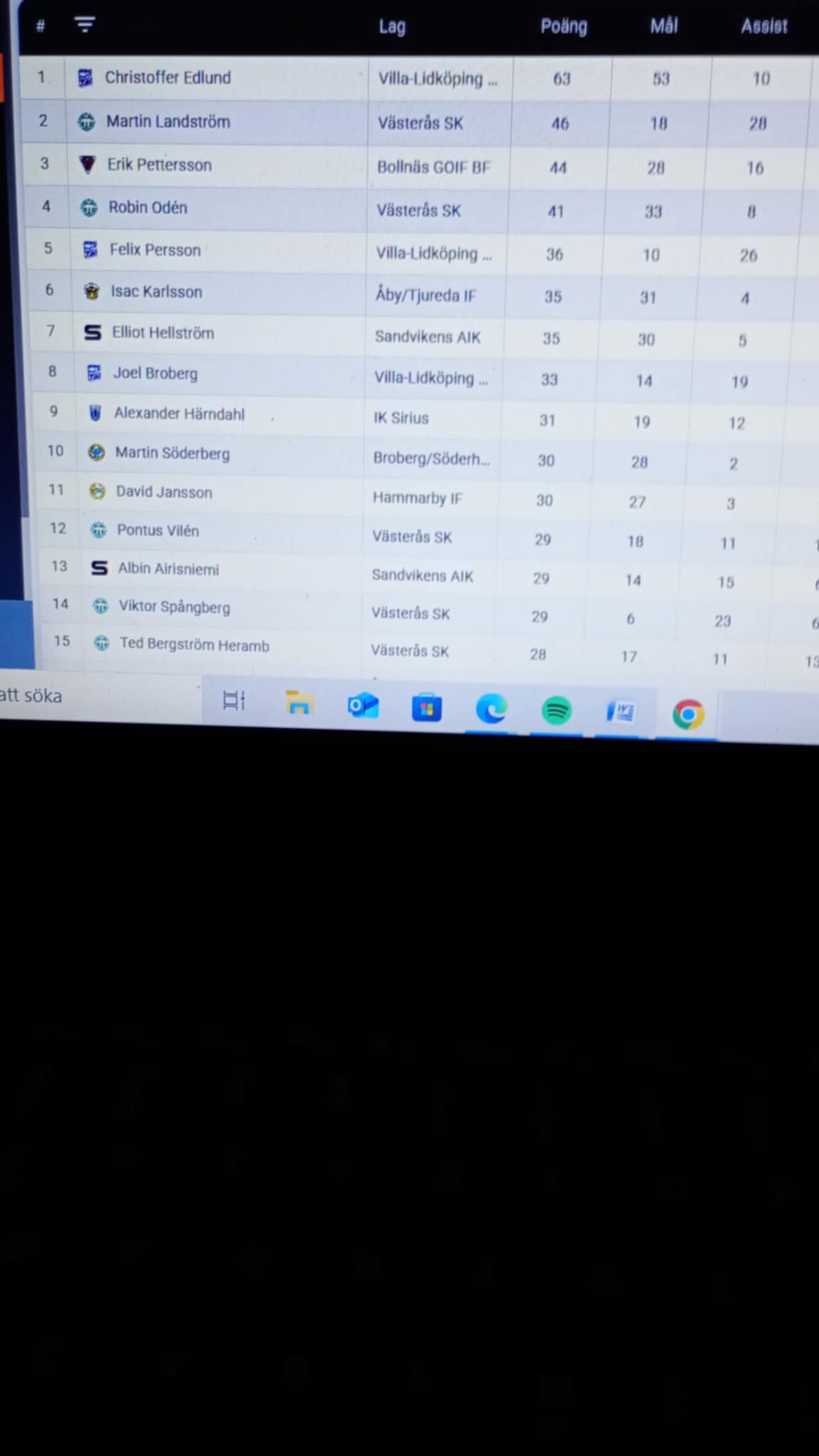Ja det var tabellen det... vi kikar lite på poängligan (Topp 15) med innan vi lägger ut fredagens matcher.