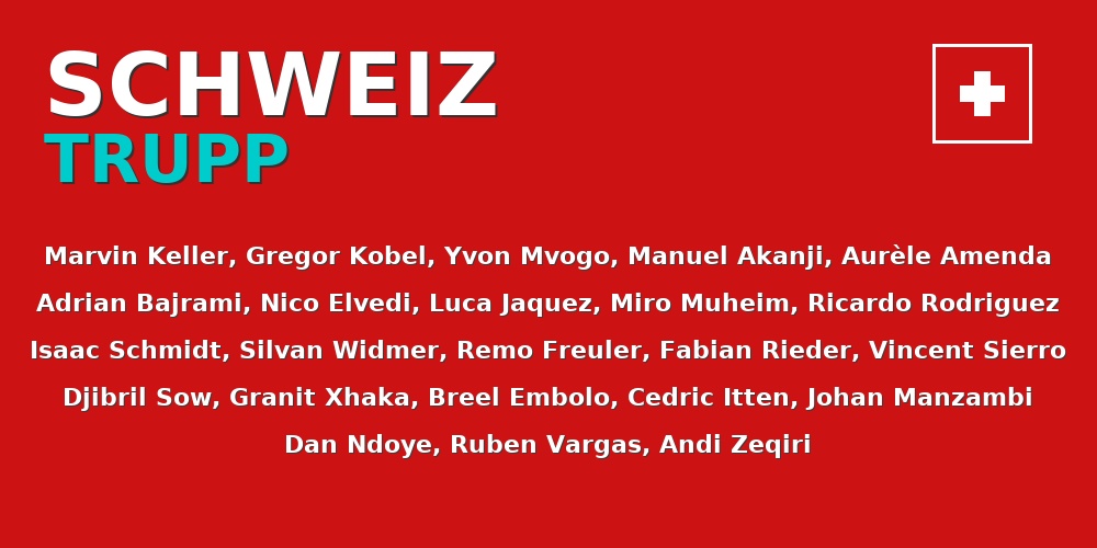 Två spelare är nykomlingar i A-landslaget: Luca Jaquez (VfB Stuttgart) och Adrian Bajrami (FC Luzern). Tillbaka i truppen är Yvon Mvogo, Djibril Sow och Andi Zeqiri. Skador på Denis Zakaria och Michel Aebischer tvingar fram ändringar. Simon Sohm (Fiorentina) är också skadad och missar samlingen; ingen ersättare kallas just nu.
