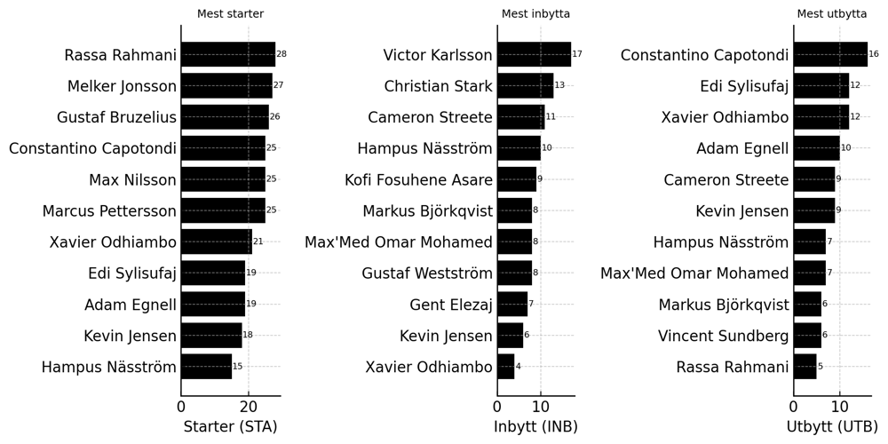 Samtidigt var planen en sak, verkligheten en annan. Klubben hade internt satt högre mål än en niondeplats. Efter kvalplats och tredjeplats 2024 var det här ett steg bakåt, det är ingen idé att låtsas något annat. Året var stökigt: spelare avstängda på grund av kriminalitet, skador på flera nyckelpositioner och ett BoIS som aldrig riktigt fick lugn och kontinuitet.