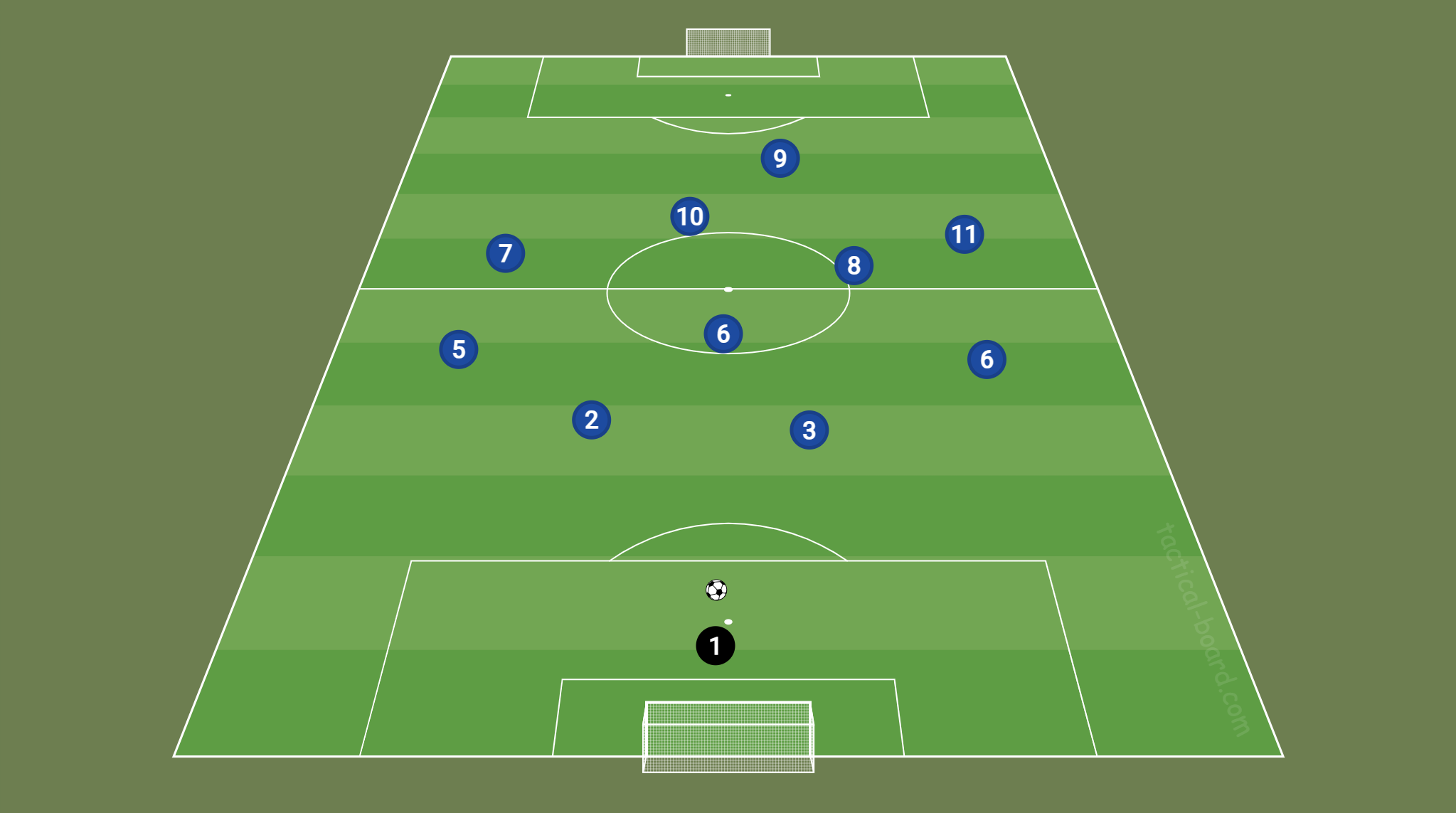 De två övriga innermittfältarna hade större frihet. Den ena tog ofta en box-to-box-roll, med mycket löpningar både framåt och hemåt, medan den andra i anfall kunde kliva högre upp och bli en sorts tia bakom anfallaren, eller ibland till och med lägga sig bredvid längst fram. Det gjorde att grundidén fortfarande var 4–3–3, men att den faktiska formen skiftade en del beroende på motståndare och matchbild.