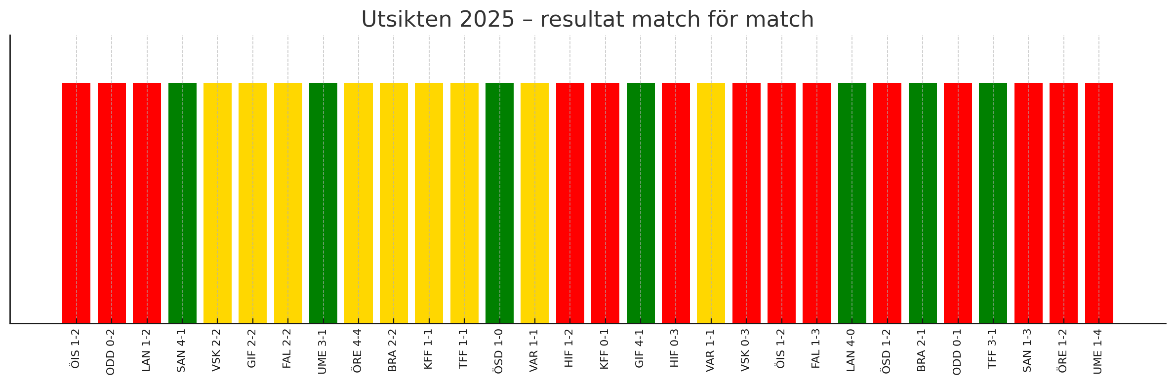 Utsikten 2025 är ett lag som spelar ganska rak fotboll, inte dominerar boll, försöker ta sig fram via dribblingar och längre bollar – och som därför hamnar i många öppna, svajiga matcher där det går fort åt båda håll.