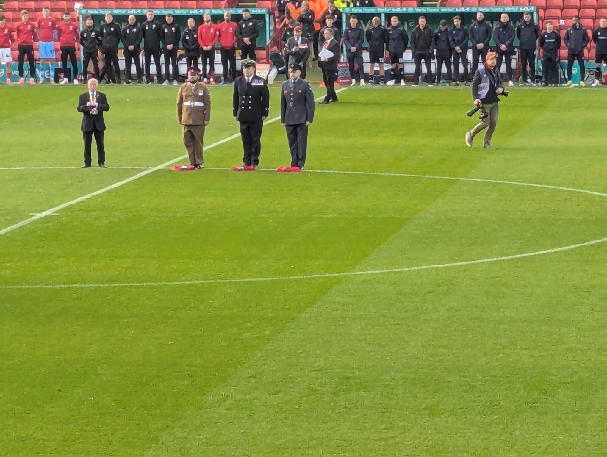 Före matchen så hyllades krigsveteranerna genom ”Laying a poppy wreaths” som på så många andra arenor i England denna eftermiddagen, samtidigt som ”The last post” spelades. En fin tradition.