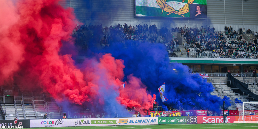Tillresta ÖIS-supportrar med rökshow.