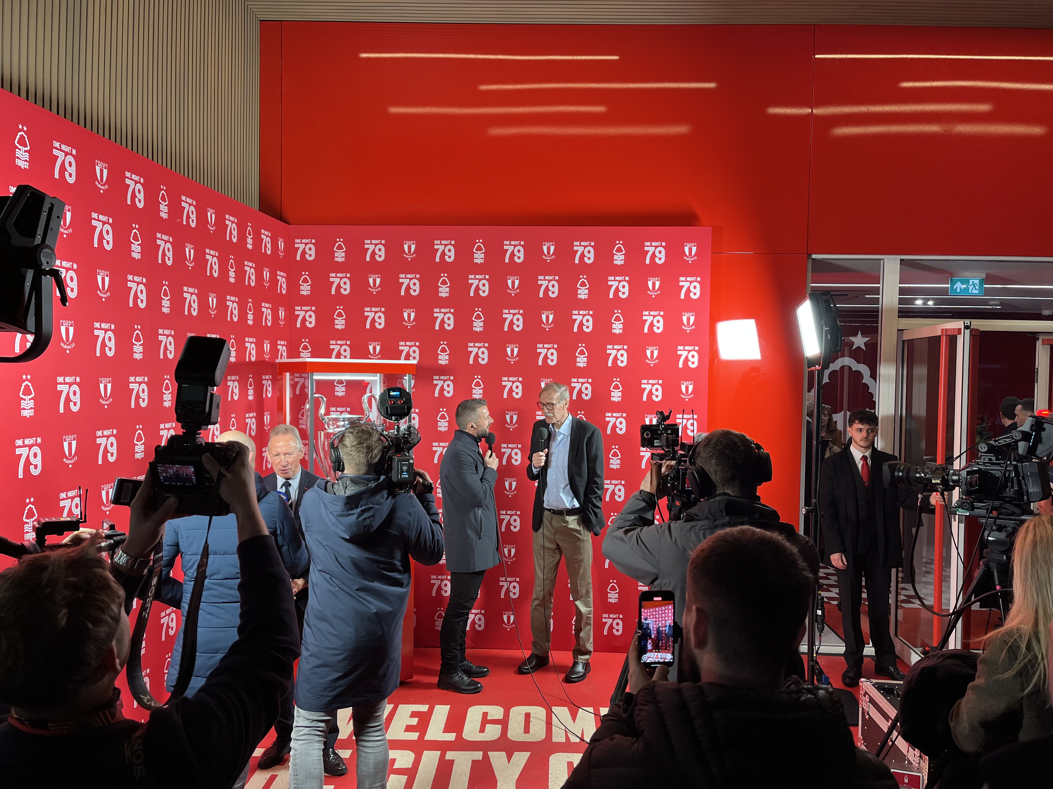 Utanför entrén till City Ground hade ett stort pressombud samlats i väntan på legendarerna. Europacuppokalen var på plats och Forest hade byggt upp både scen och rullat ut en röd matta. När spelarna anlände kändes det väldigt lyxigt, nästintill som en Hollywoodpremiär när det kom jubel från fans och hördes smattrande kameror. Det märktes att hemmalaget tog den historiska matchen på allra högsta allvar och vilket snyggt mottagande spelarna fick. En kvart innan avspark hyllades även lagen på innerplan med stående ihållande applåder och höga jubel. Senare under matchen så överröstades Forest-legendarer av applåder från publiken varje gång de reste sig på läktarplats. Kort sammanfattat så blev det en väldigt fin hyllning som sig bör då man förtjänar all beröm om man som svensk tagit sig till Europacupfinal.