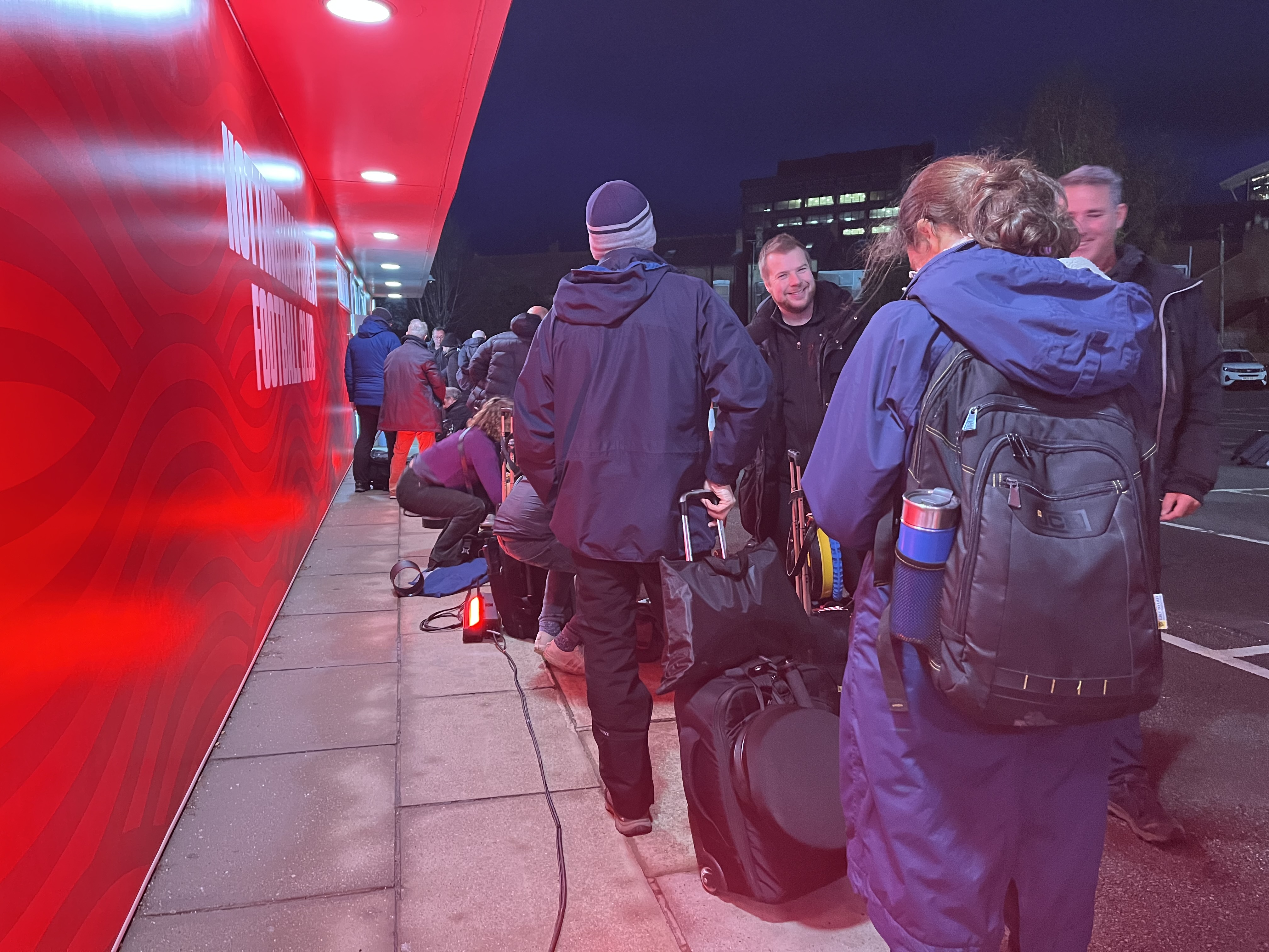 Efter att ha tagit in stämningen från uppsamlingspuben begav jag mig mot City Ground för uthämtning av ackreditering och trots att man var i god tid så fick man trängas i en lång kö in till pressrummet där merparten av kön utgjordes av kamerapersoner. Medan TV-gänget med Jennifer Kücükaslan i spetsen fick förtur (troligen på grund av sändningsstart) så stod jag och Sydsvenskans Max Wiman ett bra tag i ledet vilket Wiman beklagade sig över.