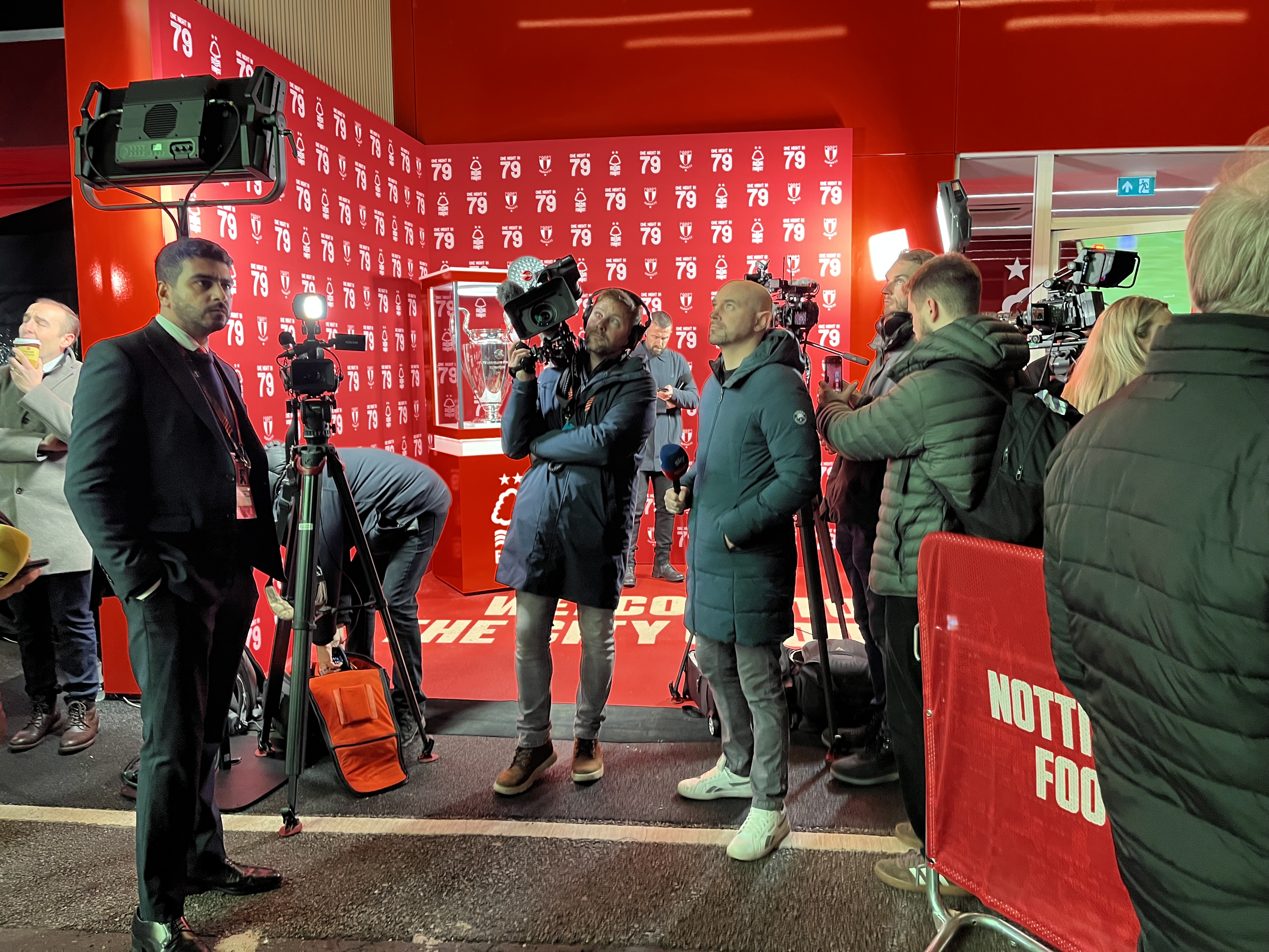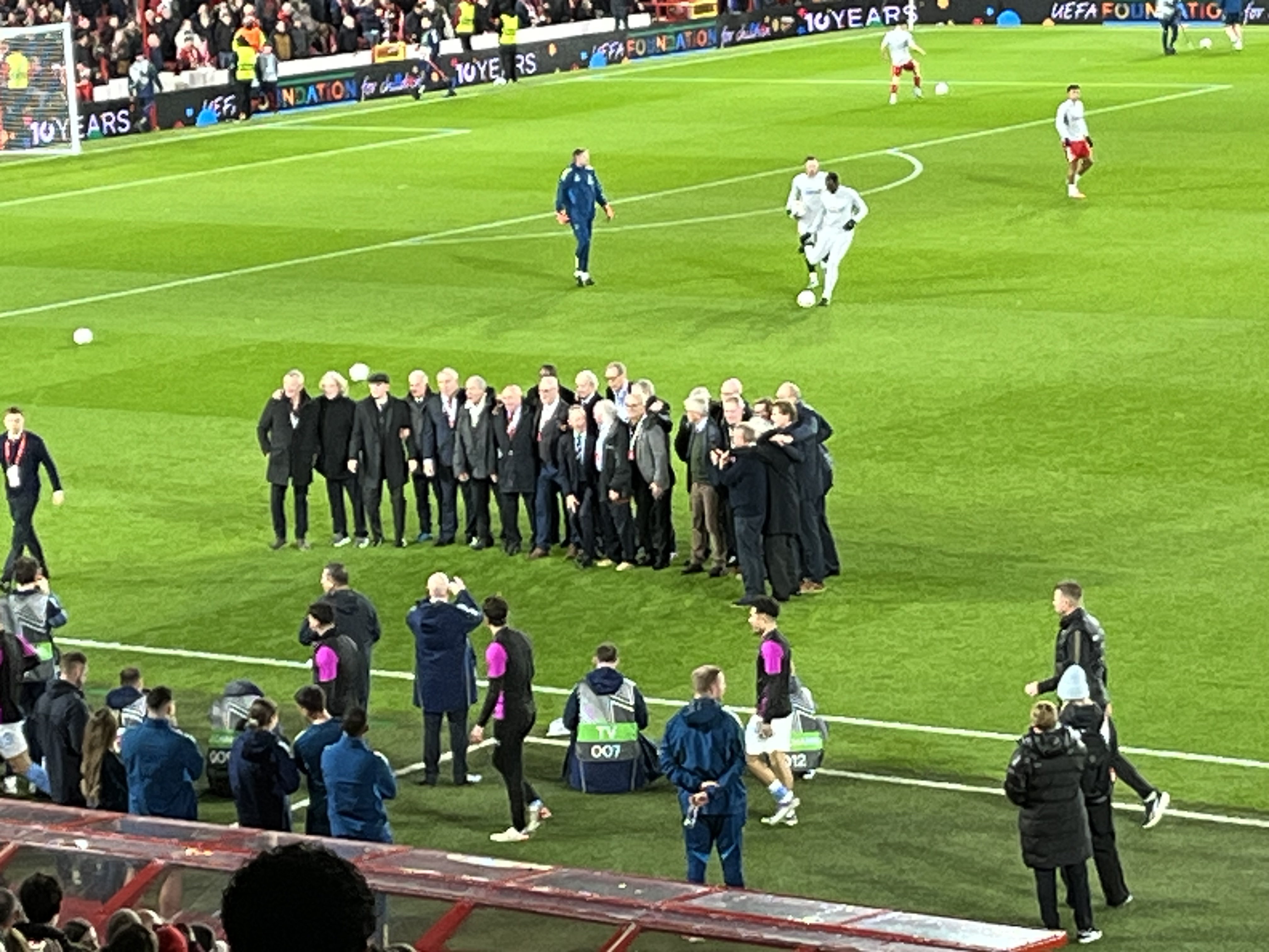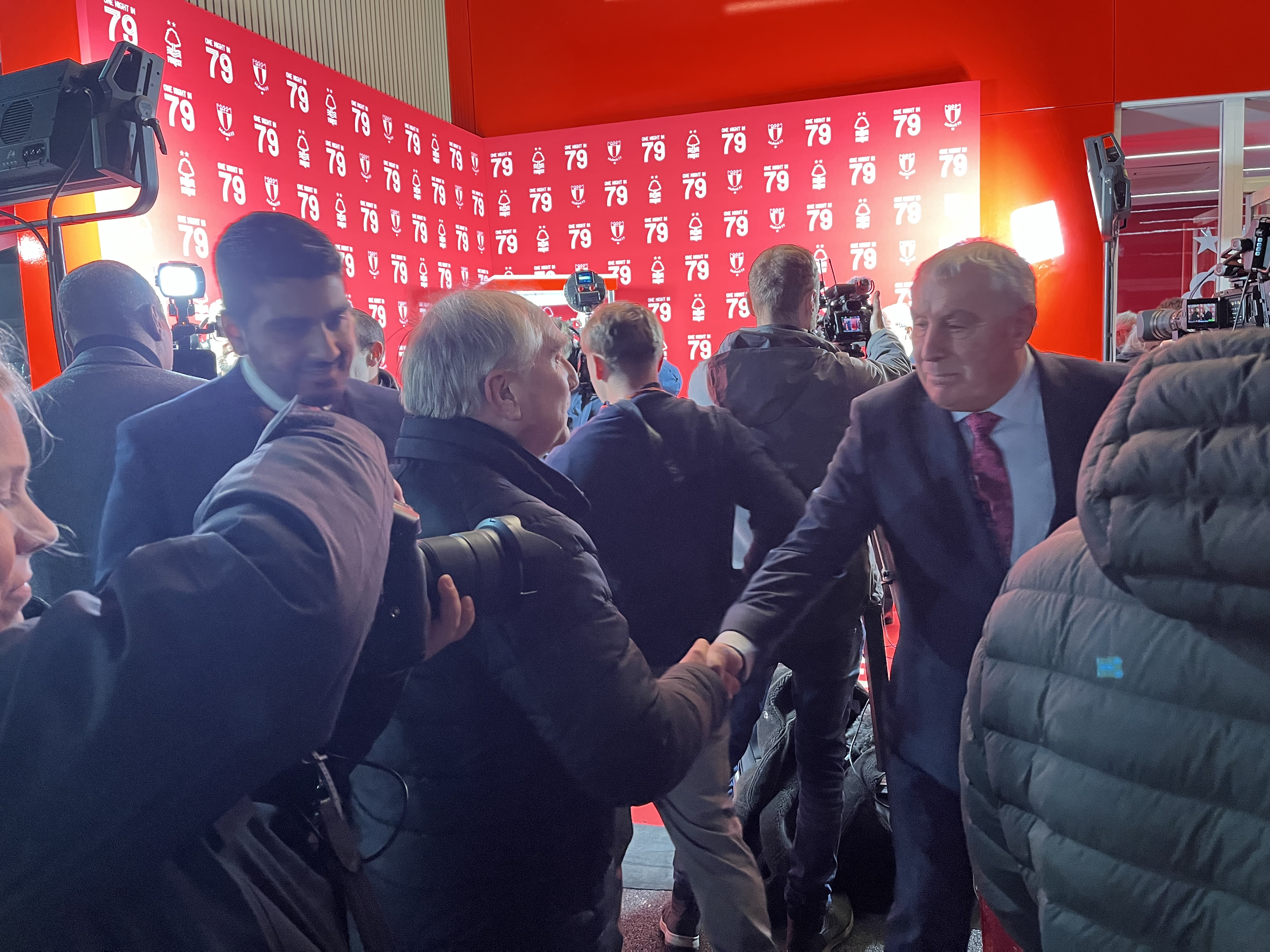 När vi väl hämtat ut ackrediteringen väntade en mediaträff med 79-lagen. Forest hade rullat ut den röda mattan och byggt ett snyggt område för att hylla de gamla spelarna. Lagen, som hade ätit middag i en byggnad mittemot, kom till slut ut på röda mattan och snabbt var kameror och mikrofoner framme för att få legendarernas tankar kring tillställningen.
