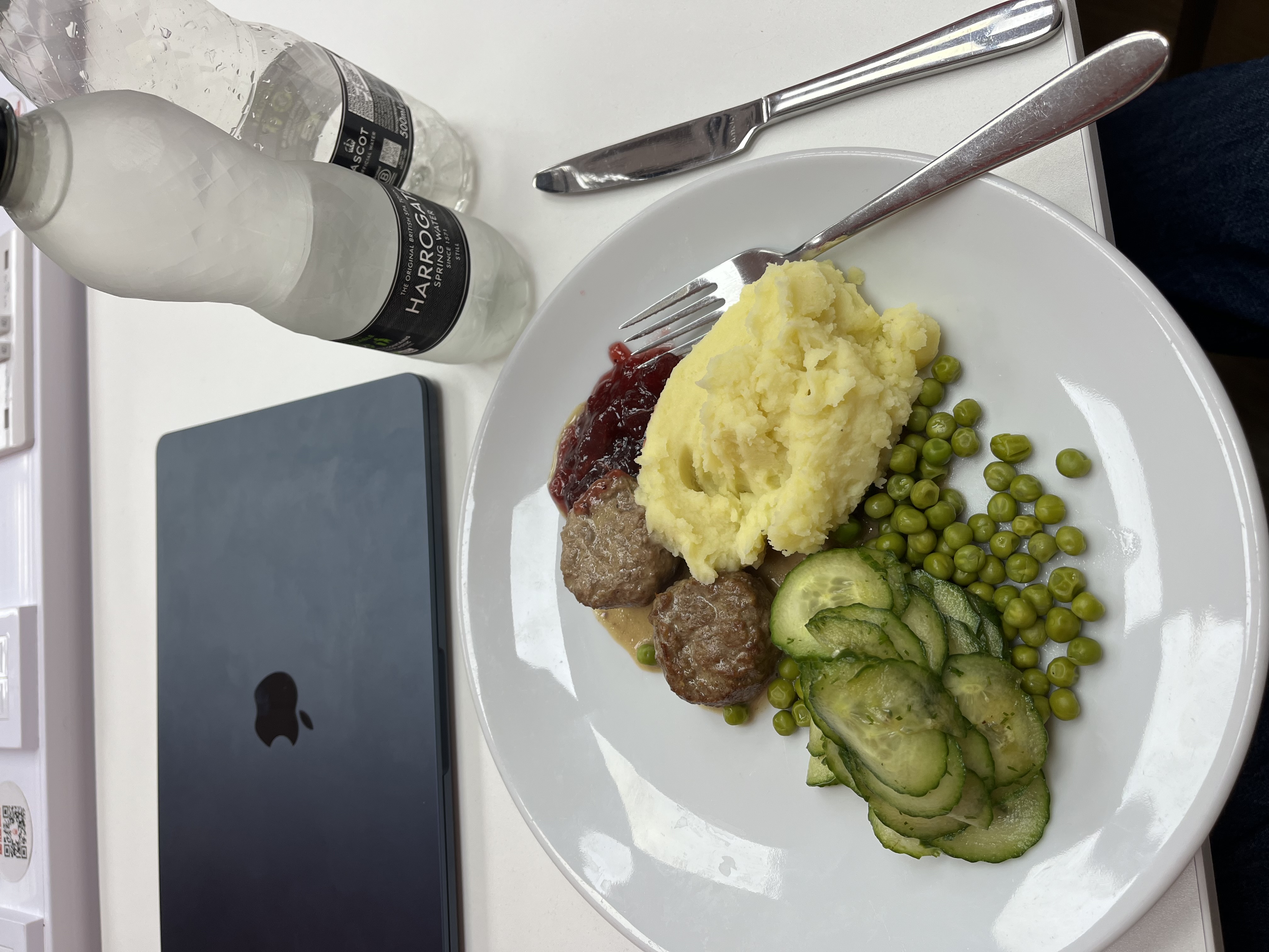 I pressrummet bjöds det på svensk middag i form av köttbullar och potatismos.