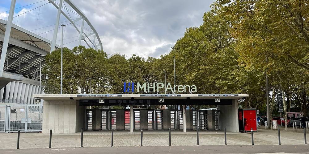 MHPArena är en fantastisk arena för fotboll. Bra sikt överallt, enkelt att ta sig till, mycket möjligheter till aktiviteter, ordentligt med barer, restauranger och lokala evenemang. Runt omkring arenan, mycket parkeringsplatser, tillgång till buss och tunnelbanor. Mattan är hybridgräs sedan i somras och även om det regnar, så är mattan bra och publiken knappt blöt. Så en riktig gladiatorsarena. En borg,som förhoppningsvis förblir ointaglig.