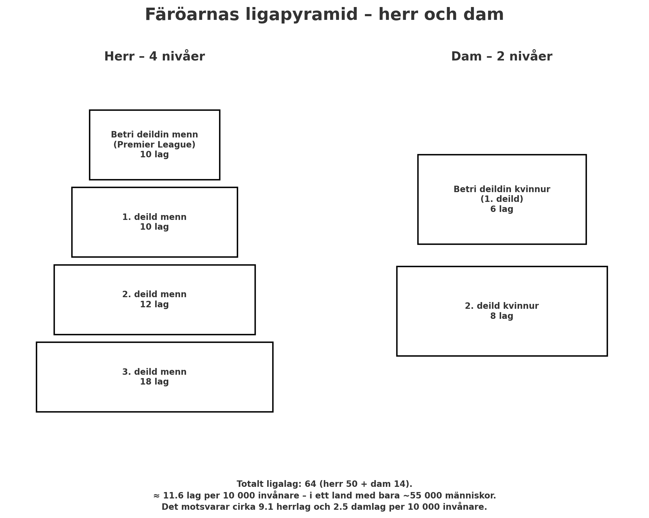 OBS: Faktarutan i bilden innehåller fel siffror. Det ska stå att Färöarna har 20 klubbar i det nationella ligasystemet och cirka 50 klubbar totalt i hela fotbollspyramiden – inte 18 respektive 40 som det står i grafiken .