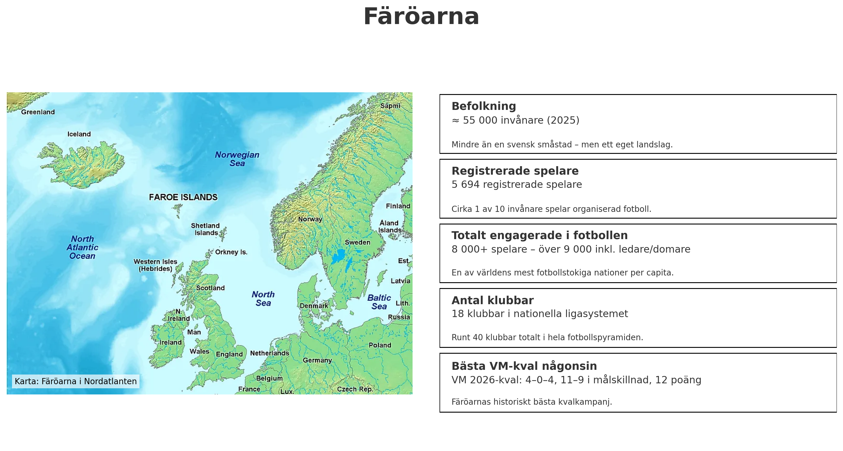 För att förstå varför Färöarna har hamnat där de är i dag måste man titta både på kartan, kulturen, klubbfotbollen, förbundet, infrastrukturen – och till sist på vad som faktiskt händer nere på planen.