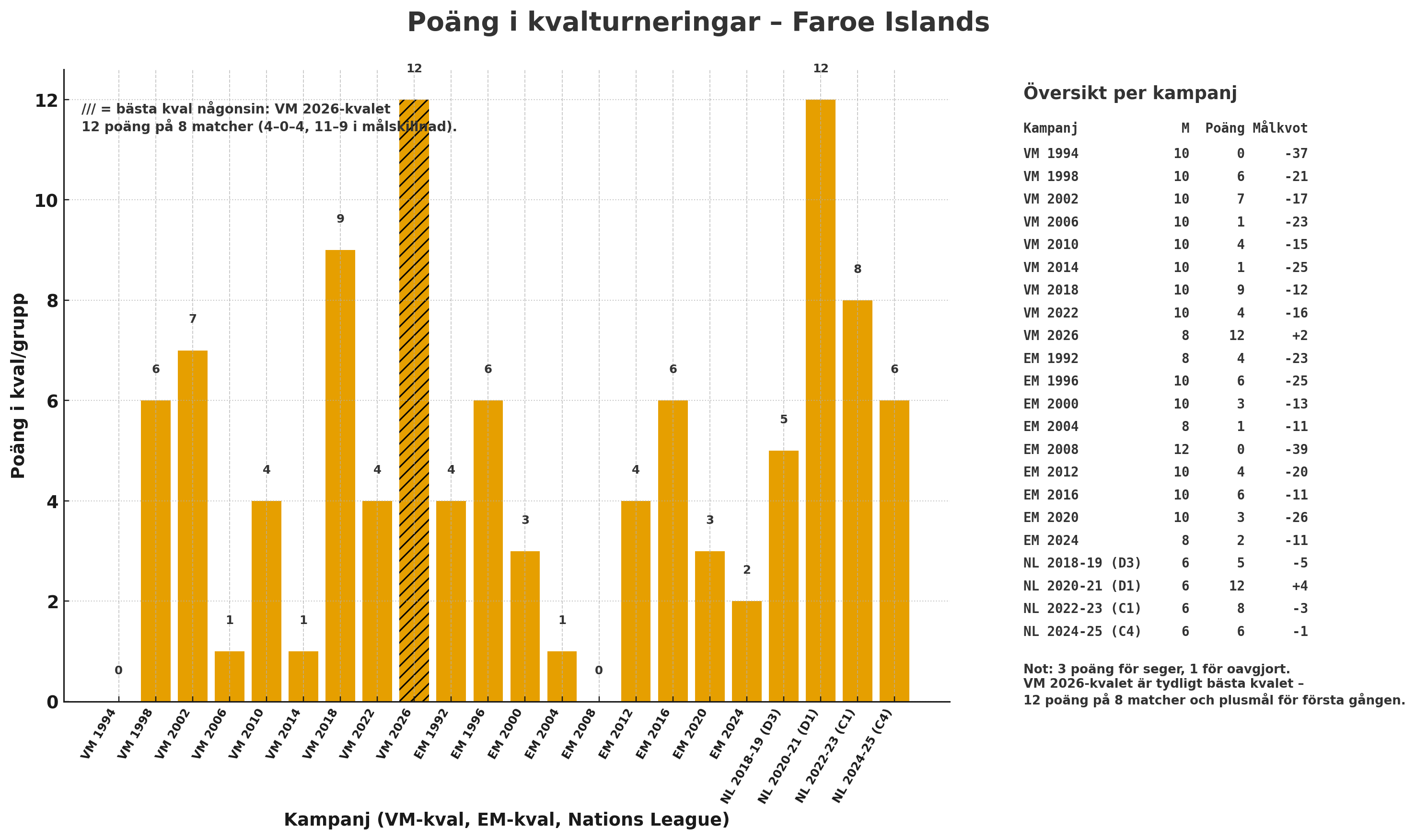 För Färöarna själva är årets kval redan ett bevis. De gick in i en grupp där de förväntades sluta näst sist – och kommer ut med fyra segrar, två tunga skalper, sin bästa kvalrad någonsin och ett landslag som för första gången på allvar visat att de inte bara kan skrälla, utan prestera på en jämn nivå.