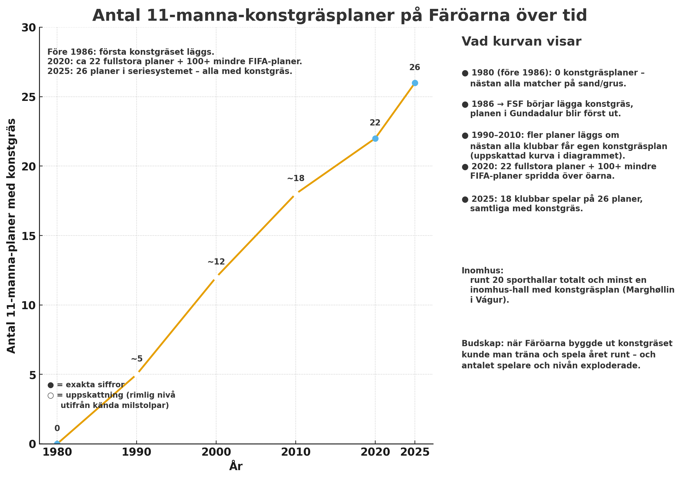 På en del håll i världen har konstgräs varit kontroversiellt. På Färöarna blev det livlina. I dag spelas nästan all ligafotboll på konstgräs, och planerna används året runt av barn, ungdomar och seniorer. Naturgräs reserveras till landslagsarenor som Tórsvøllur och Svangaskarð.