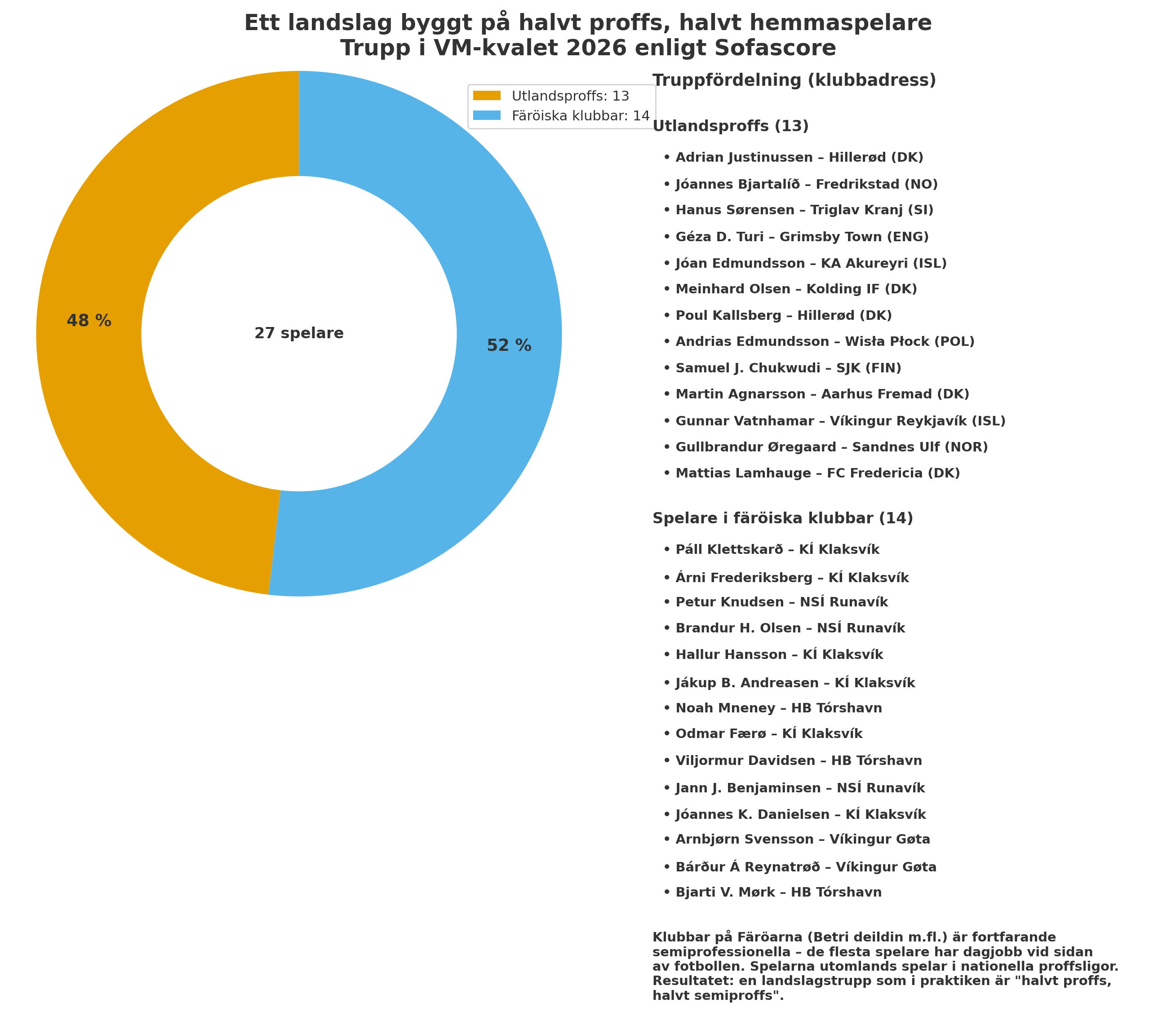 På andra håll hittar vi spelare som Hanus Sørensen, wingbacken som gjort tre mål i kvalet och är lagets bäste målskytt i gruppen. Vi ser spelare som Martin Agnarsson , med viktiga mål och assist, som tjänar sin fotbollslön i Danmark eller andra nordiska länder