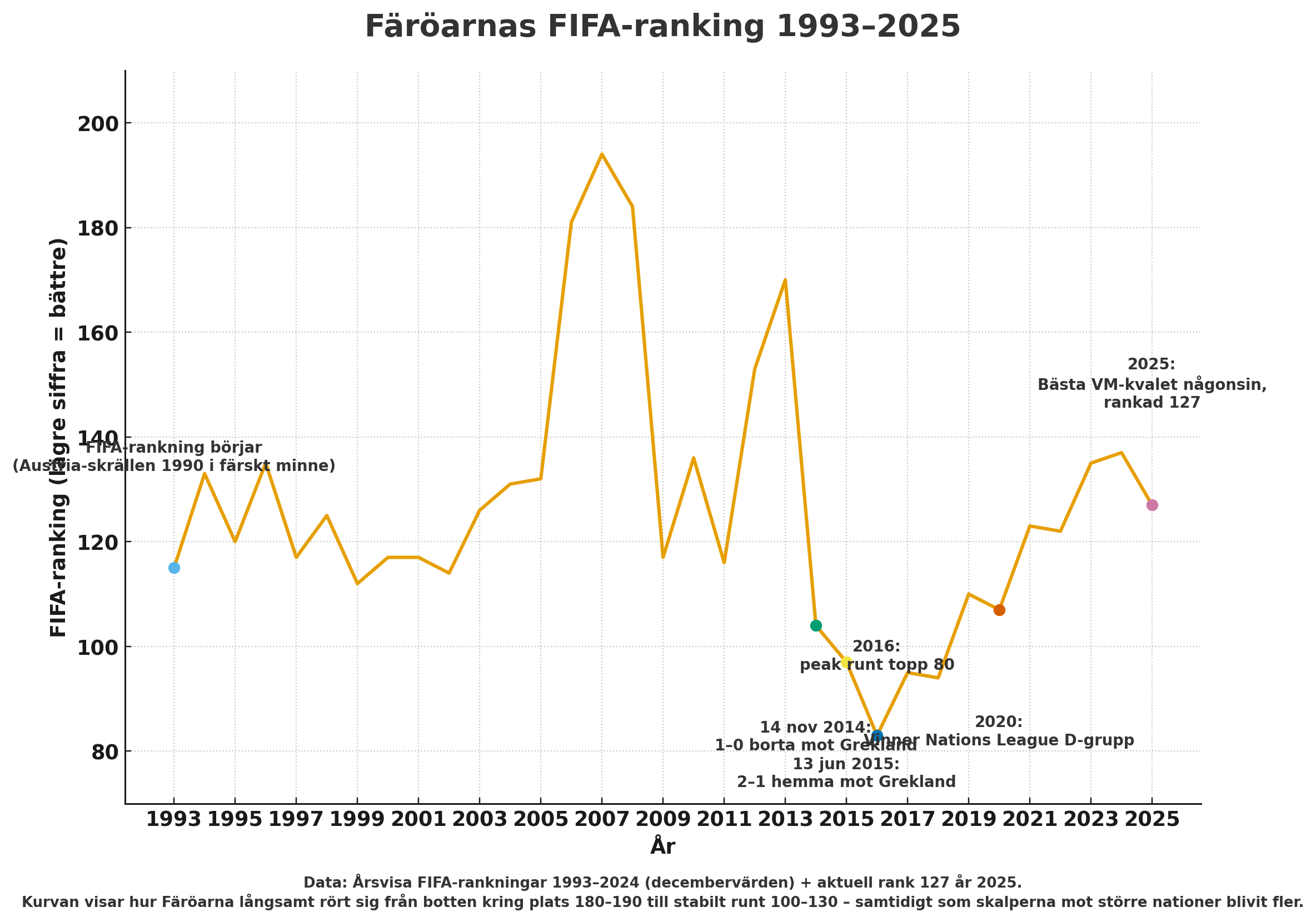På pappret är det fortfarande svårt att få ihop. Färöarna är ett självstyrande ö-rike mitt ute i Nordatlanten, med ungefär 53–55 000 invånare, alltså färre än många svenska kommuner. Ändå sitter vi nu och pratar om ett landslag som tagit fler poäng än någonsin i ett VM-kval, slagit en etablerad nation som Tjeckien, kört över Montenegro och under en period var med i diskussionen om en playoff-plats till VM 2026.