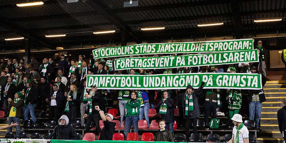 – Det är inte att okej, jag tycker inte att vi ska spela på Grimsta men det är ingenting som påverkar vår prestation och det gör det inte heller. Vi kämpar på och krigar på där och jag är jätteglad att så många åker dit och stöttar oss som de gör. Sen hade det varit så mycket bättre att spela på Kanalplan (Hammarby IP) men tyvärr är den inte godkänd, säger Ellen Wangerheim till SvenskaFans.