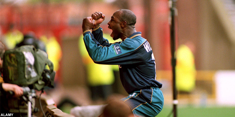 Senare i den första halvleken skickar Mehmet Scholl in ett inlägg från höger som Marcel Witeczek nickar in till 1-1. Men innan halvleken är över svarar Ajax. Marc Overmars spelar bollen snett bakåt mot Finidi George utanför straffområdet och ”De Gazelle” drämmer till direkt och får en kanonträff. Bollen borrar sig stenhårt upp i krysset, 2-1 och ett av de mest berömda målen i Ajax-historien har gjorts. Strax före halvtid ökar Ajax på, Nwankwo Kanu nickskarvar en hörna från Overmars vidare till Ronald de Boer som skjuter in 3-1.