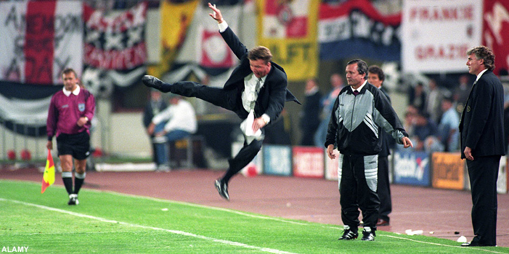 Desailly tog sitt uppdrag att stänga ner den allergichockade finländaren på största allvar. Mest berömt ögonblicket i första halvlek när Desailly med en tokhög spark (hans ben är över Litmanens huvud till slut) rensar en boll upp i stratosfären. Den höga sparken fick van Gaal, frustrerad över att domaren inte gjorde något, förevisa precis hur hög Desailly karatespark var framför fjärdedomaren. Det gav oss den mest ikoniska bilden av van Gaal.