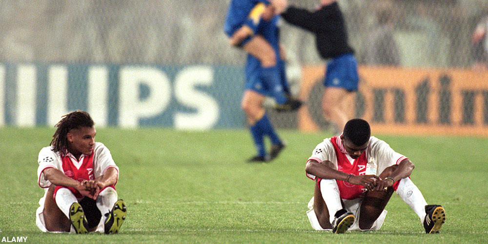 Edgar Davids går fram först och slår en fullständigt urusel straff, lös och mitt i mål, Angelo Peruzzi räddar enkelt. Ciro Ferrara gör mål. Litmanen är iskall, lurar Peruzzi åt ena hållet och rullar in den i andra. Gianluca Pessotto också säker. Arnold Scholten gör mål. Michele Padovano gör mål. Sen går Sonny Silooy fram och slår en lös straff i målvaktshöjd till höger. Peruzzi räddar. Vladimir Jugovic kliver fram och bombar in avgörandet för Juventus.
