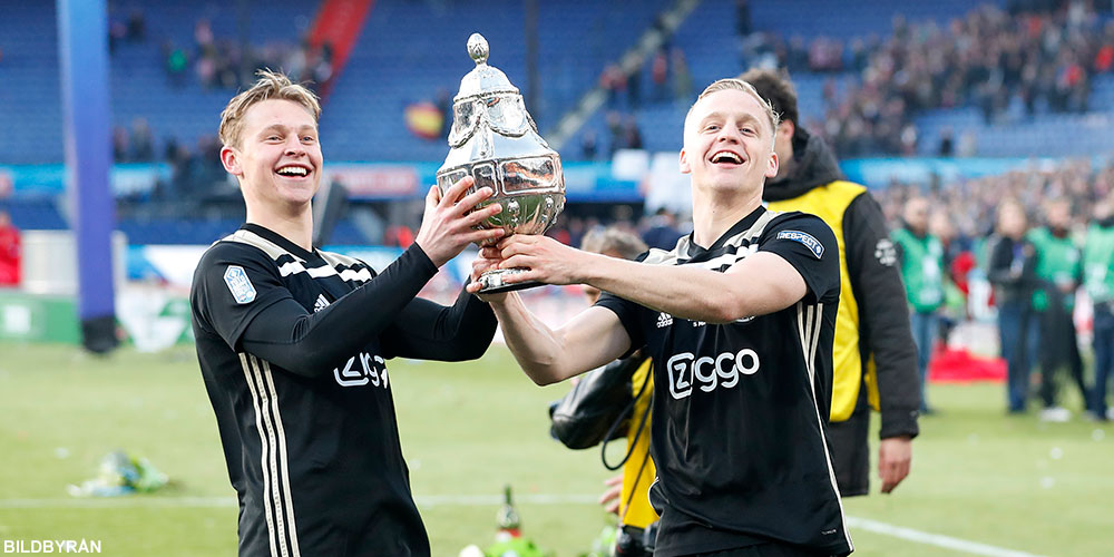 Frenkie de Jong och Donny van de Beek med säsongens första pokal.