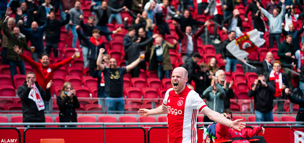 25 april blev en glädjens dag i Amsterdam. Äntligen släpptes lite på restriktionerna under pandemin och en del supportrar tilläts på fotbollsläktare igen. 7500 på Johan Cruijff Arena (med plats för 56 120) när Ajax tog emot AZ. Dagen till ära spelade Ajax fin fotboll och två mål av Davy Klaassen innebar att Ajax i praktiken säkrade det 35:e ligaguldet i klubbens historia.