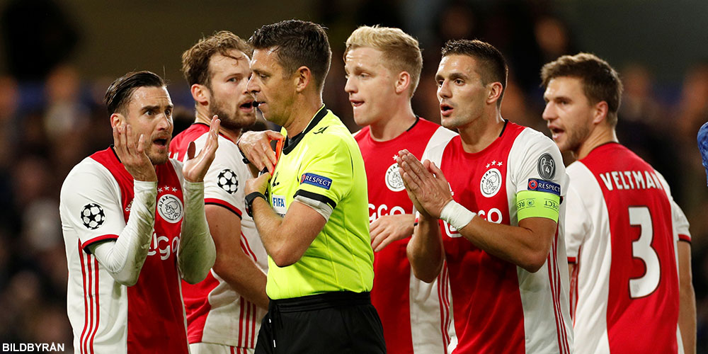 Ajax-spelarna undrar vad Gianluca Rocchi håller på med.
