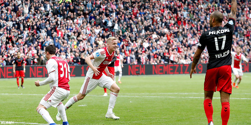 Det är fortsatt PSV i förarsätet med en 2 poängs ledning, men Ajax har åtminstone gett sig själva chansen. I nästa omgång slår man Emmen borta. Och sen händer det: Medan PSV tappar poäng mot VVV-Venlo har Ajax lekstuga mot Alexander Isaks Willem II, det slutar ”bara” 1-4 till Ajax och hade kunnat vara mycket mer. Joël Veltman, som nyligen gjort comeback efter sin korsbandsskada, får göra mål. Både Ajax och PSV på 71 poäng då men Ajax med 9 måls bättre målskillnad upp i serieledning äntligen.