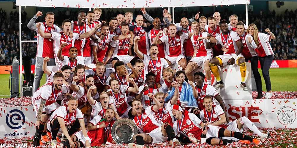 Tre dagar senare blir det officiellt när Ajax slår De Graafschap borta med 1-4. Lasse Schöne skickar såklart in en frispark, Nico Tagliafico fyller på och i andra halvlek gör Dusan Tadic två mål och säkrar skytteligasegern med det. Med 122 mål gjorda sätter Ajax nytt rekord i Eredivisie. Det är den 15 maj. Ett symboliskt datum – på dagen åtta år efter att det så efterlängtade 30:e ligaguldet säkrades med en gastkramande seriefinalen mot FC Twente, säkras nu det efterlängtade 34:e ligaguldet. Och på symbolisk mark – det var ju på De Vijferberg mot De Graafschap som Frank de Boer tre år tidigare sumpade ligaguldet senast Ajax hade det i egna händer.