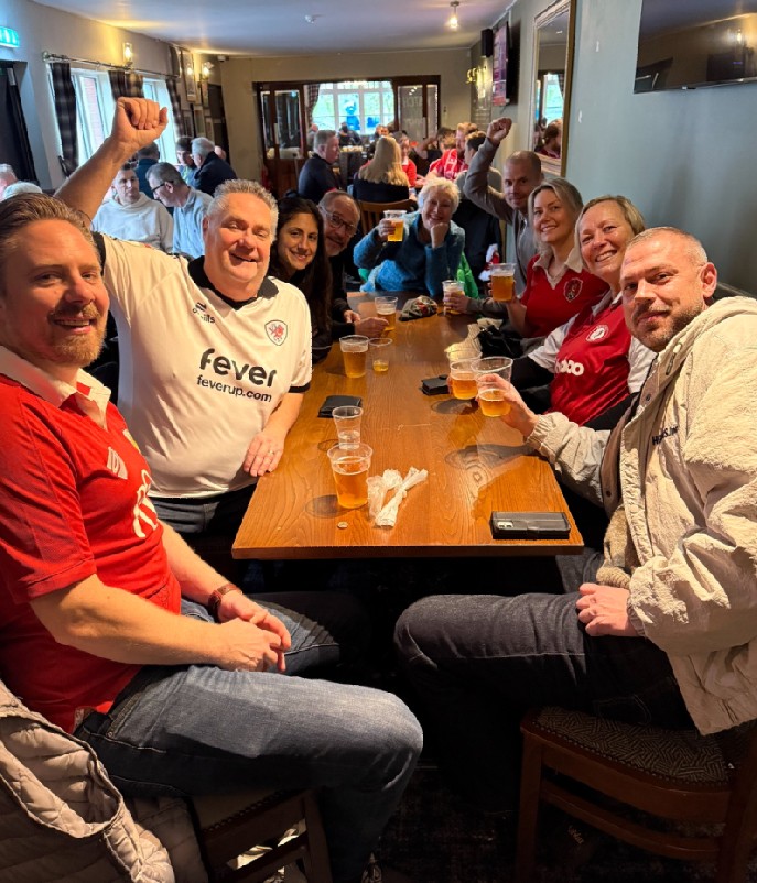 På lördagen vaknade vi upp till ett riktigt klassiskt engelskt väder, mulet och regn. Efter frukosten begav vi oss gemensamt mot arenan, redo för den tidiga matchstarten. Första anhalten blev Bristol City-puben The Rising Sun.