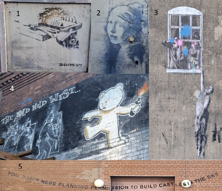 Utöver att vara känd för sin "skala" är Bristol också hemvist för den världsberömda gatukonstnären Banksy. På söndagsmorgonen passade jag på att ta en promenad för att fota några av hans verk.