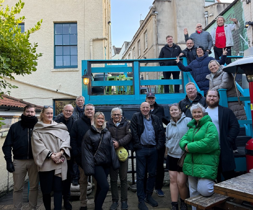 Resan startade från Arlanda tidigt på fredagsmorgonen. Efter några pubstopp i London togs sedan tåget från Paddington till Bristol Temple Meads. Det är inte lätt att hitta en pub som rymmer 28 törstiga skandinaver på en fredagskväll, men vi bestämde oss för att mötas på en av Bristols största pubar, The Commercial Rooms, som ursprungligen var en handels- och köpmansklubb från 1810. Trots pubens storlek fick vi sprida ut oss i lokalen på grund av den stora mängden besökare.