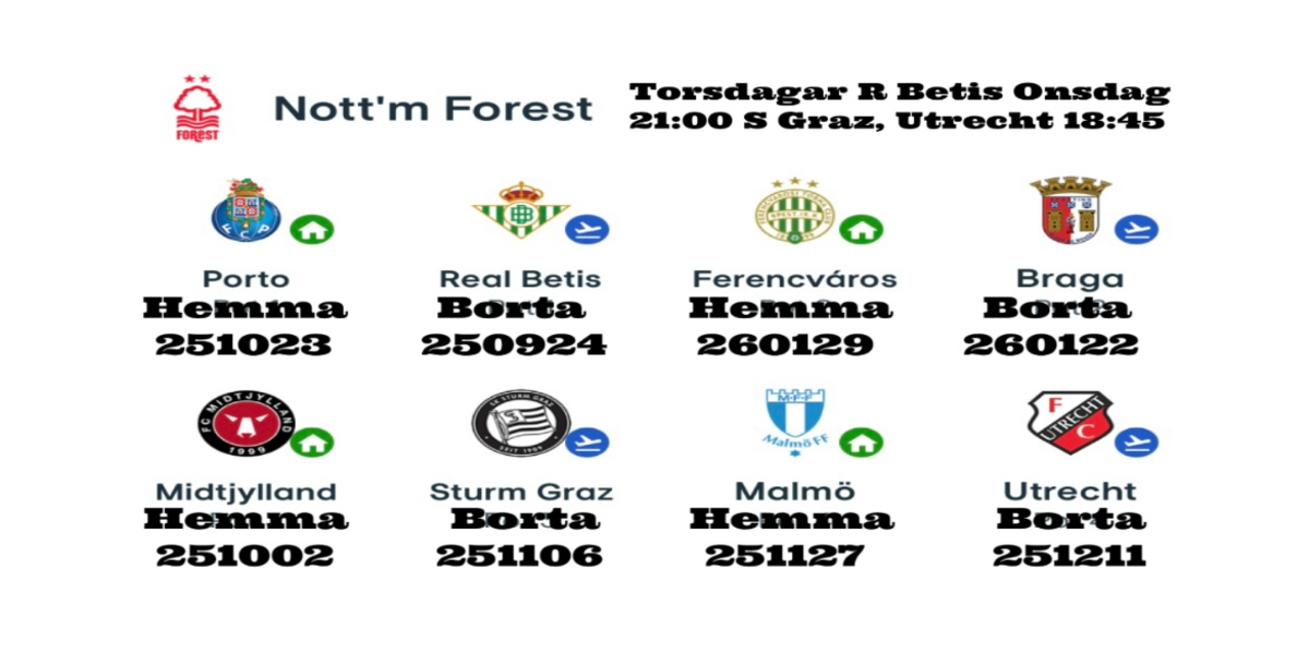 Avståndet mellan FC Midtjylland, MCH Arena, Herning och Världsberömda City Ground,Nottingham, England 1480,3 kilometer.