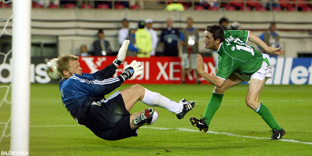 Robbie Keane mot Oliver Kahn i VM 2002.