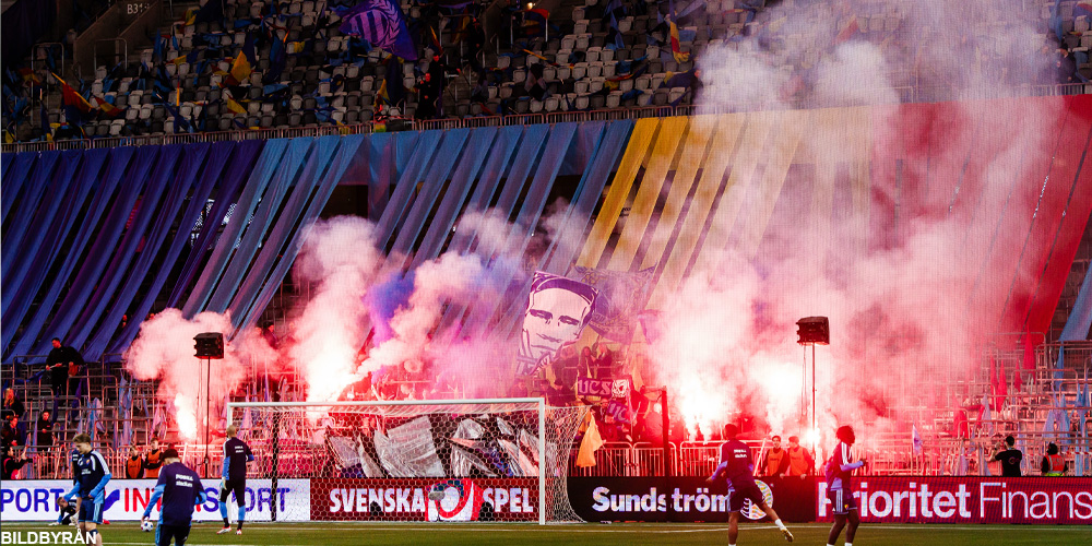 Efter ungefär tio minuters spel i derbyt mellan Hammarby och Djurgården tvingades domaren bryta matchen. Anledning är den begränsade sikten inne på 3 Arena, till följd av bränningar från kortsidorna. Men kort därpå kom spelet igång igen.