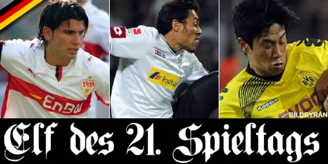 Den 21:e Bundesliga-omgången är spelad. Borussia Mönchengladbach och Stuttgart körde över sitt motstånd, vilket märks i omgångens elva som också fylls av tre av ligans bästa backar.