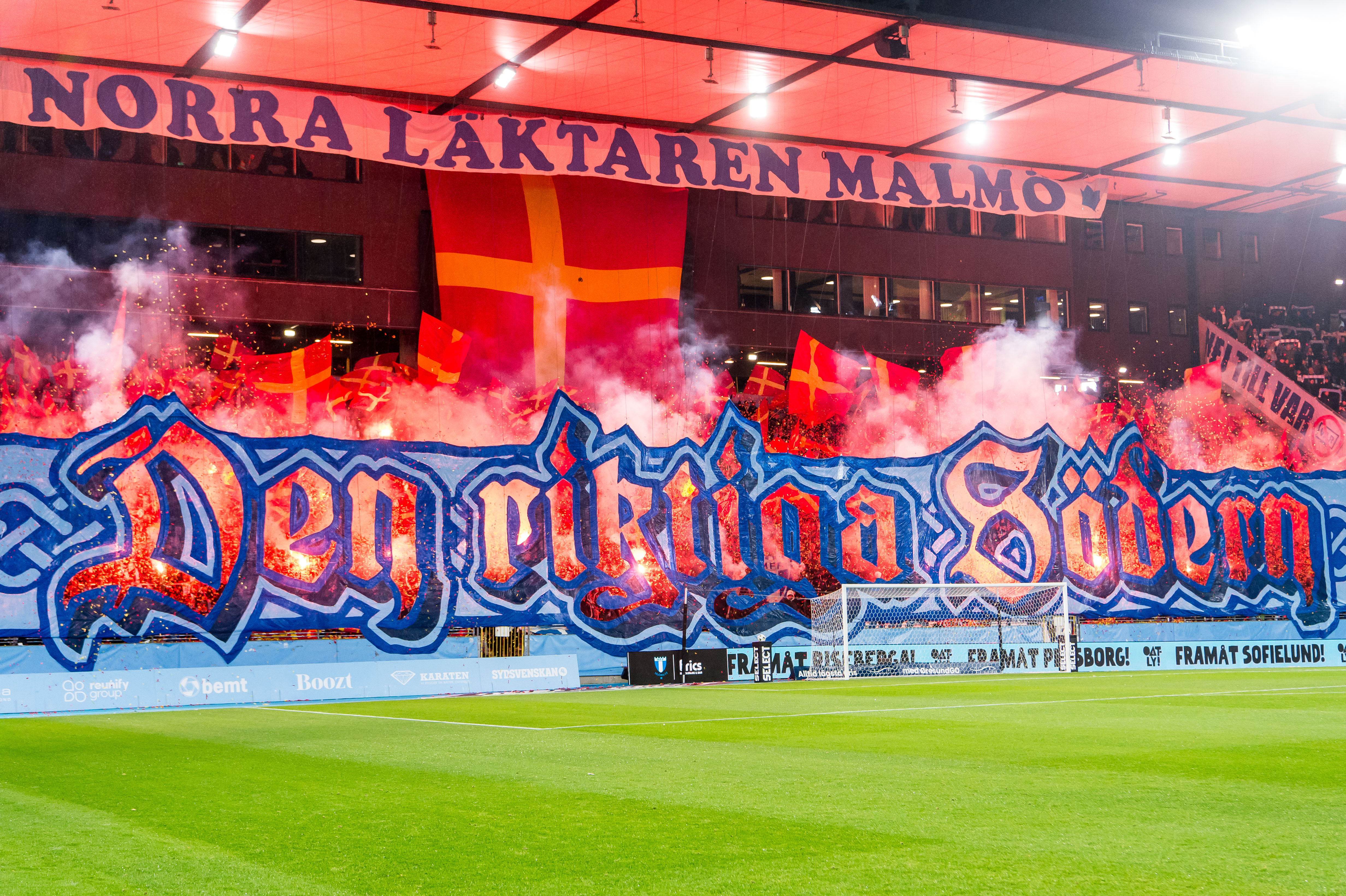 Norra Läktaren Malmö. På bilden är tifot mot Hammarby – Williams favorittifo 2025.