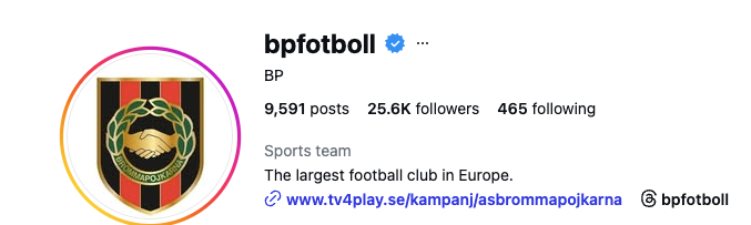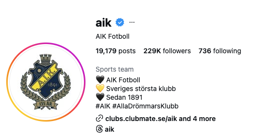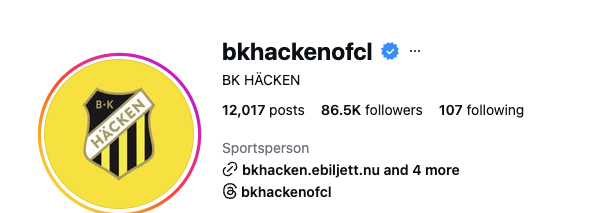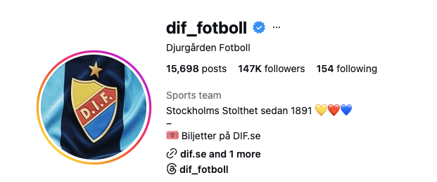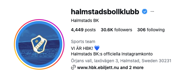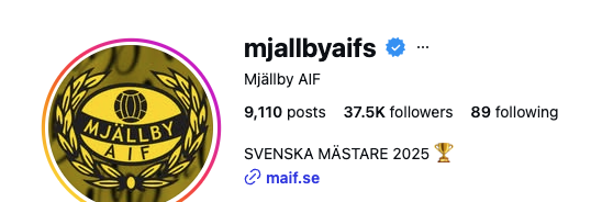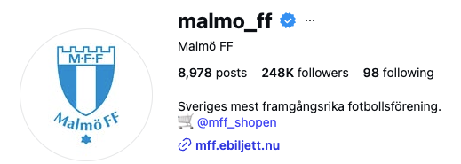 Motivering: Vilka har vunnit flest titlar? Malmö FF. Klart att man ska lyfta det i sin insta-bio. Dessutom gör man en snygg lösning för att länka till shoppen, ingen oklickbar länk - utan en klickbar länk till ett annat konto. Extrapoäng bara för det!