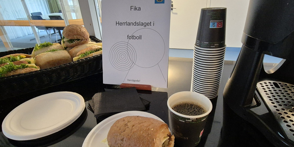 Efter en dryg kvart tar den öppna träningen slut. Då var det bara att knata uppför backen till loungen och ladda batterierna med journalistens go-to-mat kaffe och macka – som får bra betyg.