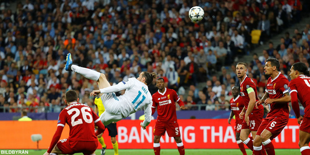 Gareth Bales bicicleta i CL-finalen mellan Liverpool och Real Madrid 2018. Foto Bildbyrån