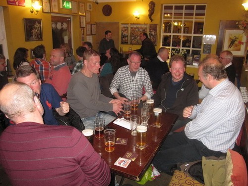 Två glada Grimsby-supportrar på Chesterfield Arms innan match.