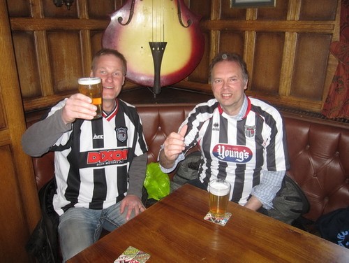 Två i sällskapet valde klokt nog istället att åka och titta på Alfreton vs Grimsby i 5:e divisionen (Conference). Matchen slutade 3-3 inför 1771 åskådare (varav 1 063 bortasupportrar). De två svenskarna i Grimsbytröjor gjorde succé bland bortafansen.