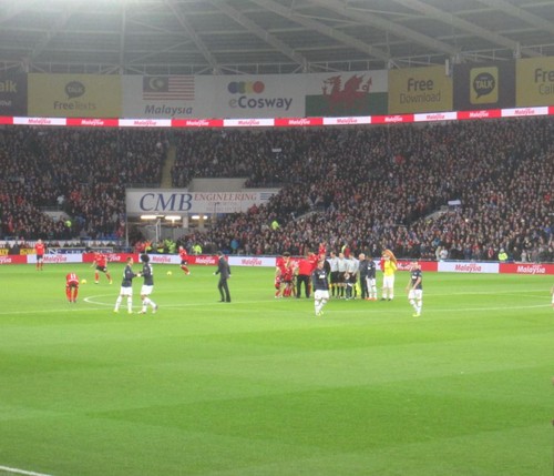 På söndagen tog flertalet av oss tåget till Cardiff för att bevittna matchen mellan Cardiff City och Manchester United. Det blev en betydlig mer underhållande tillställning jämfört med matchen dagen innan. Efter en sen kvittering av Cardiff så fick de båda lagen gå av planen med varsin pinne.