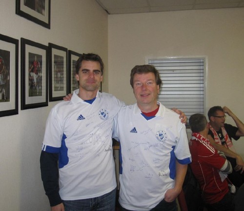 På medlemsmötet passade Öxnehagas avgående tränare på att dela ut två signerade matchtröjor från det nyligen uppflyttade division 4-laget till två lyckliga distanssupporters.