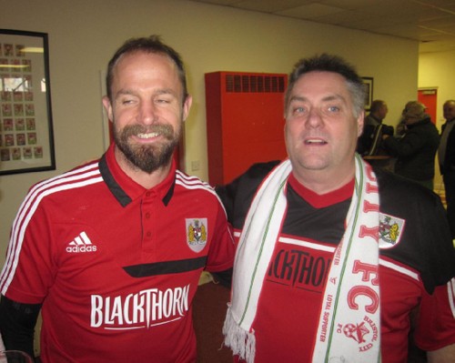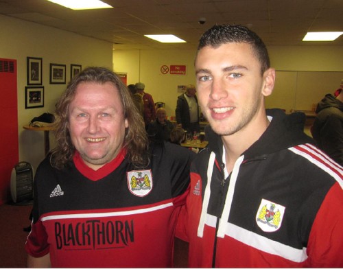 En glad Jocke bredvid Bristol Citys skadade trotjänare Louis Carey