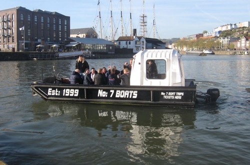Hela sällskapet tog en båttur till dagens första pubbesök
