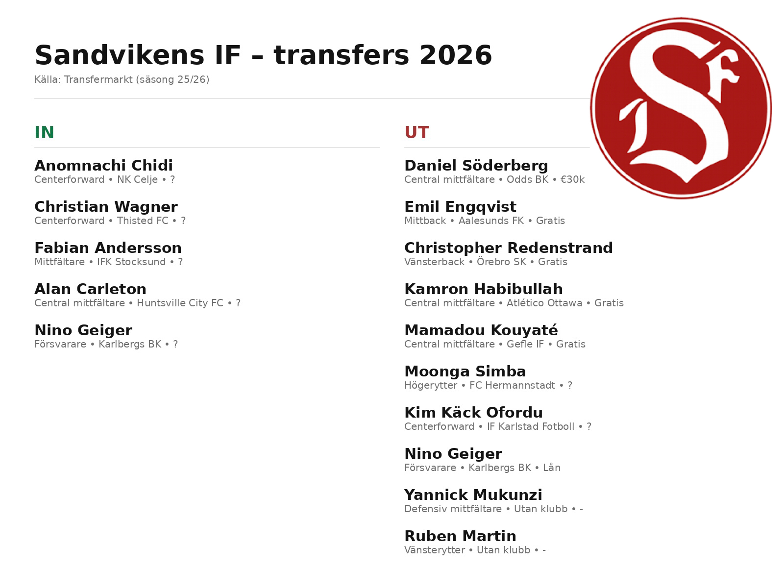 Just därför blir det extra intressant att följa Sandviken även i år. Frågan är inte bara hur laget kommer prestera i tabellen, utan också vilka nya fullträffar klubben lyckats hitta den här gången.