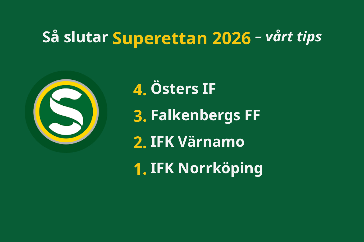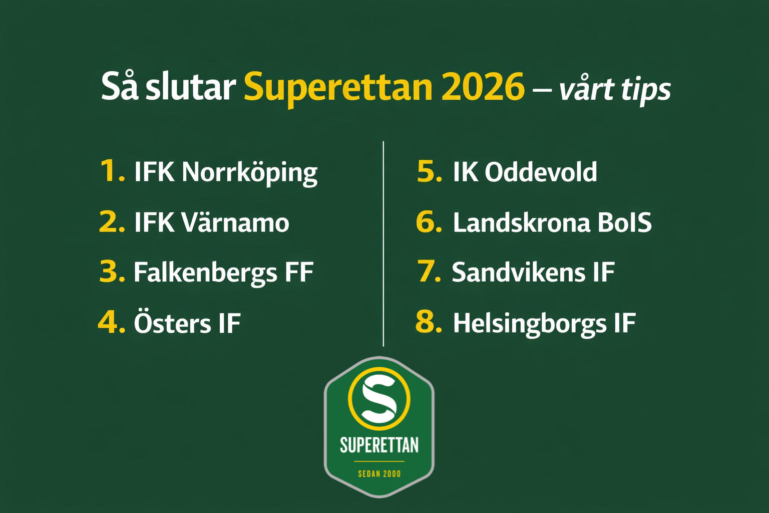Där sätter vi punkt för vårt tips om hur Superettan 2026 kommer att sluta. Hela tabellen hittar ni nedan.