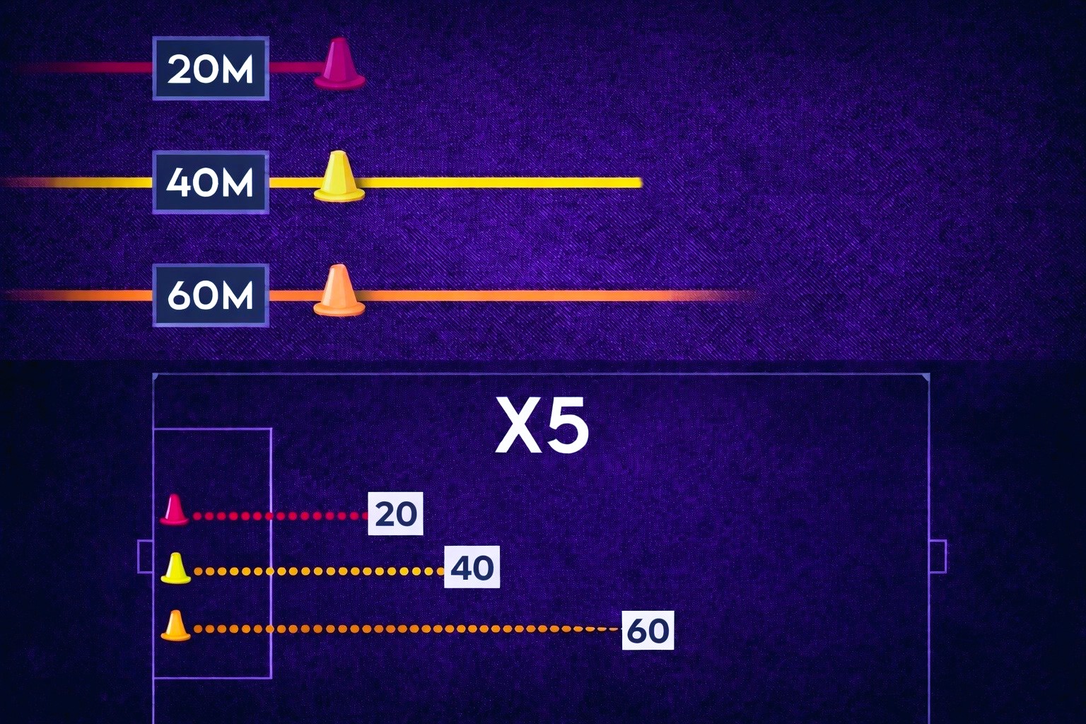 Spelarna springer först till den röda konen och tillbaka, sen till den gula och tillbaka, och sen till den oranga och tillbaka. Detta gör man i en serie på 5 gånger utan att stanna . Klubben som använder detta flitigt är Championship-laget Bristol City , som för övrigt gav Kim Hellberg sin första förlust i England. Kravet är att spelarna ska klara testet på 4 minuter och 30 sekunder .