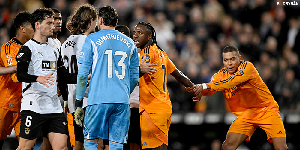 Söndagens avslutning består av den alltid högintressanta matchen på Estadio Mestalla mellan Valencia och Real Madrid. Hemmalaget kämpar även i år med att undvika nedflyttning och ligger just nu bara en poäng över strecket, men hemmamatcherna mot Real Madrid blir alltid sevärda matcher. De senaste åren har tillställningarna tyvärr främst präglats av incidenter mellan Real Madrids Vinícius Júnior och Mestalla-publiken, men det bjuds ofta även på dramatik på planen – eller vad sägs om åtta mål och tre röda kort på de senaste tre Mestalla-mötena? Just Viní Jr. är avstängd för denna match, vilket troligtvis kommer att lugna stämningen.